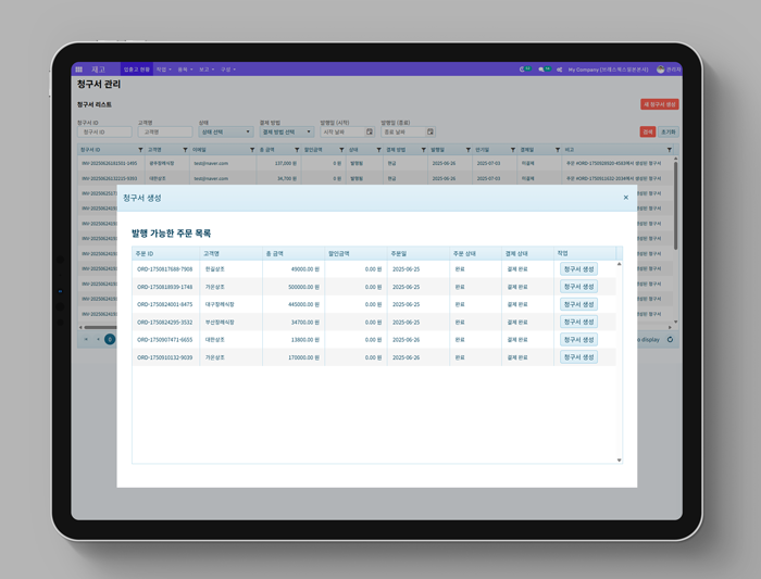 전자세금계산서 발행 및 회계 시스템 자동 연동